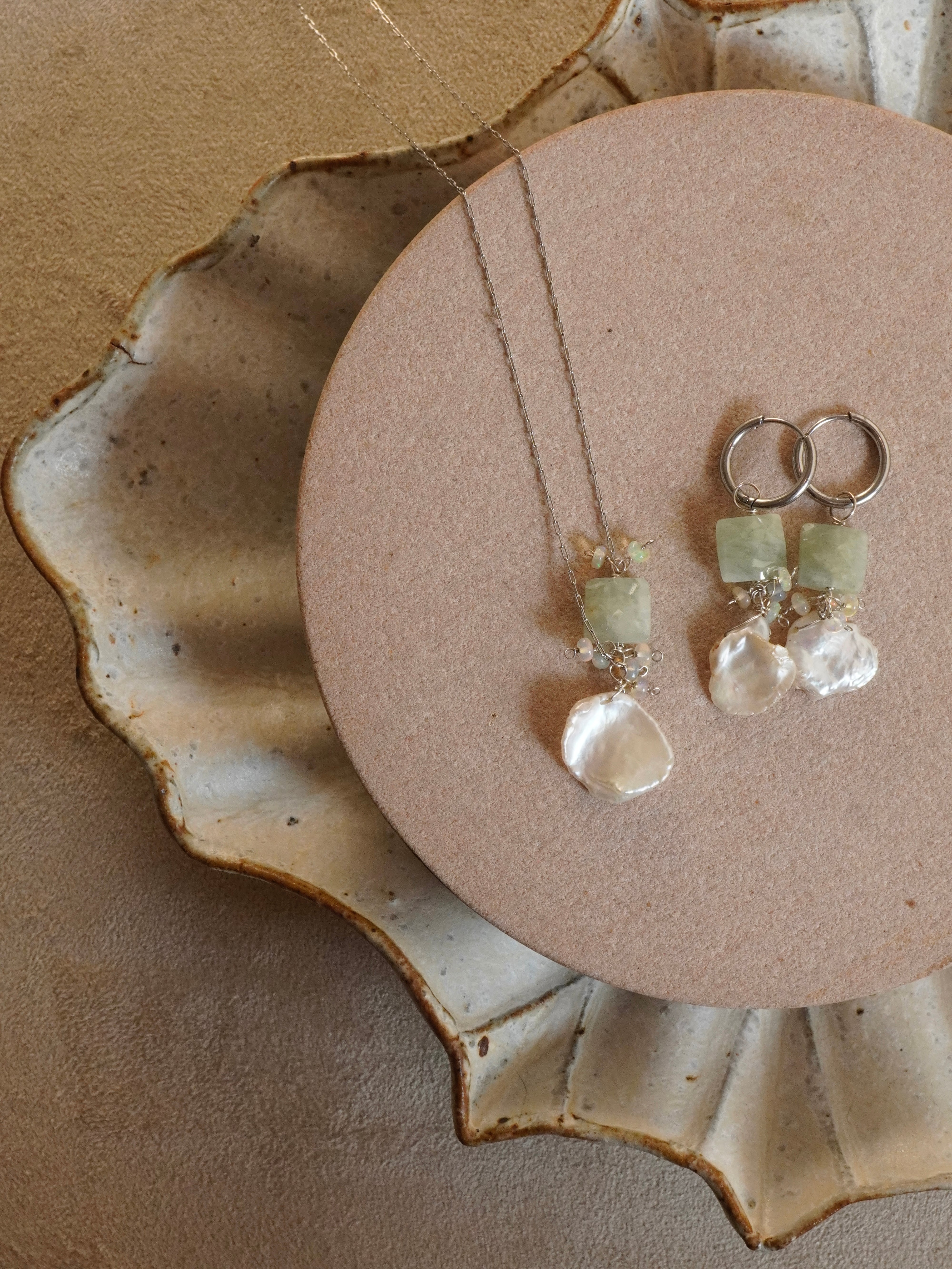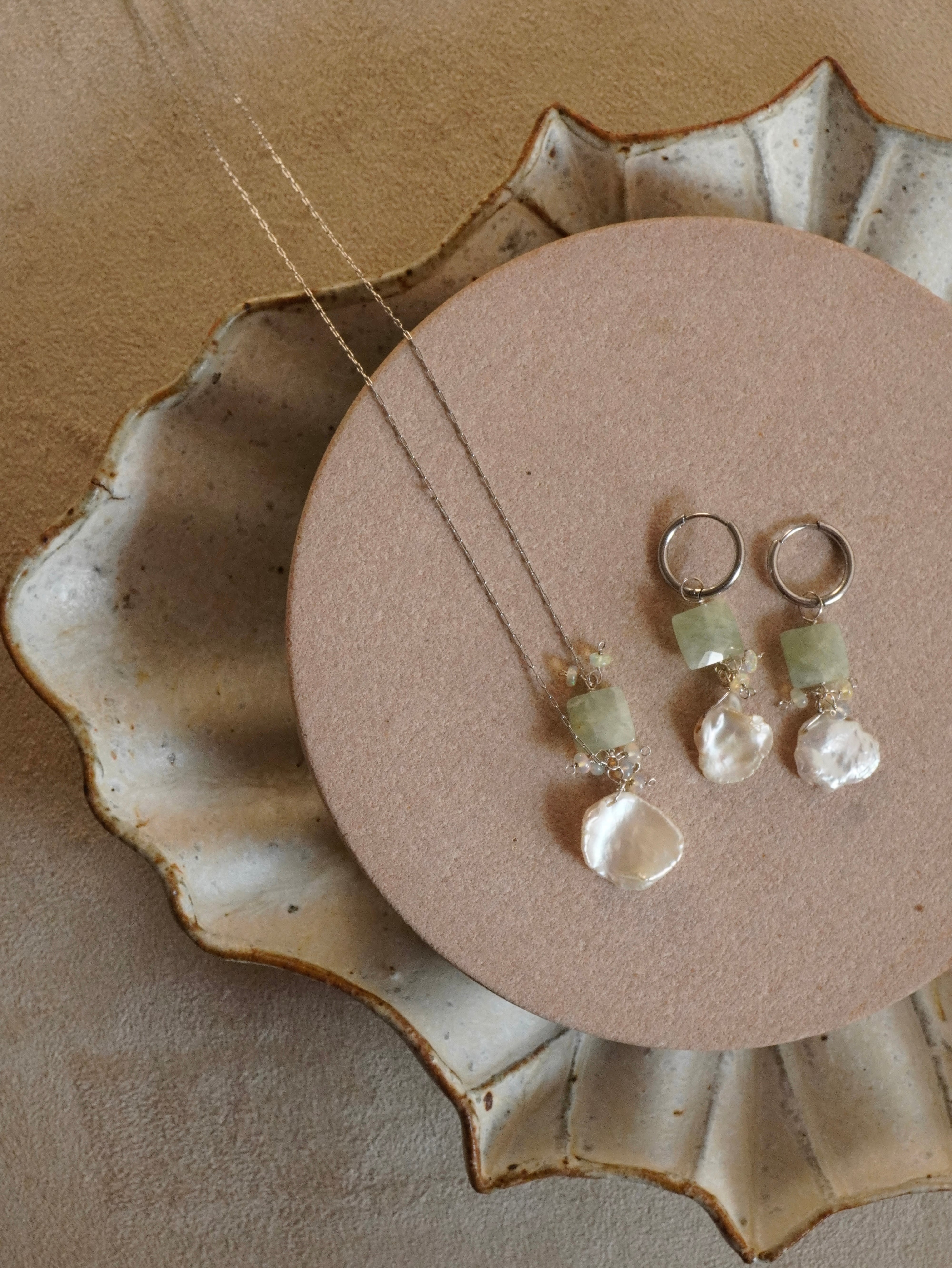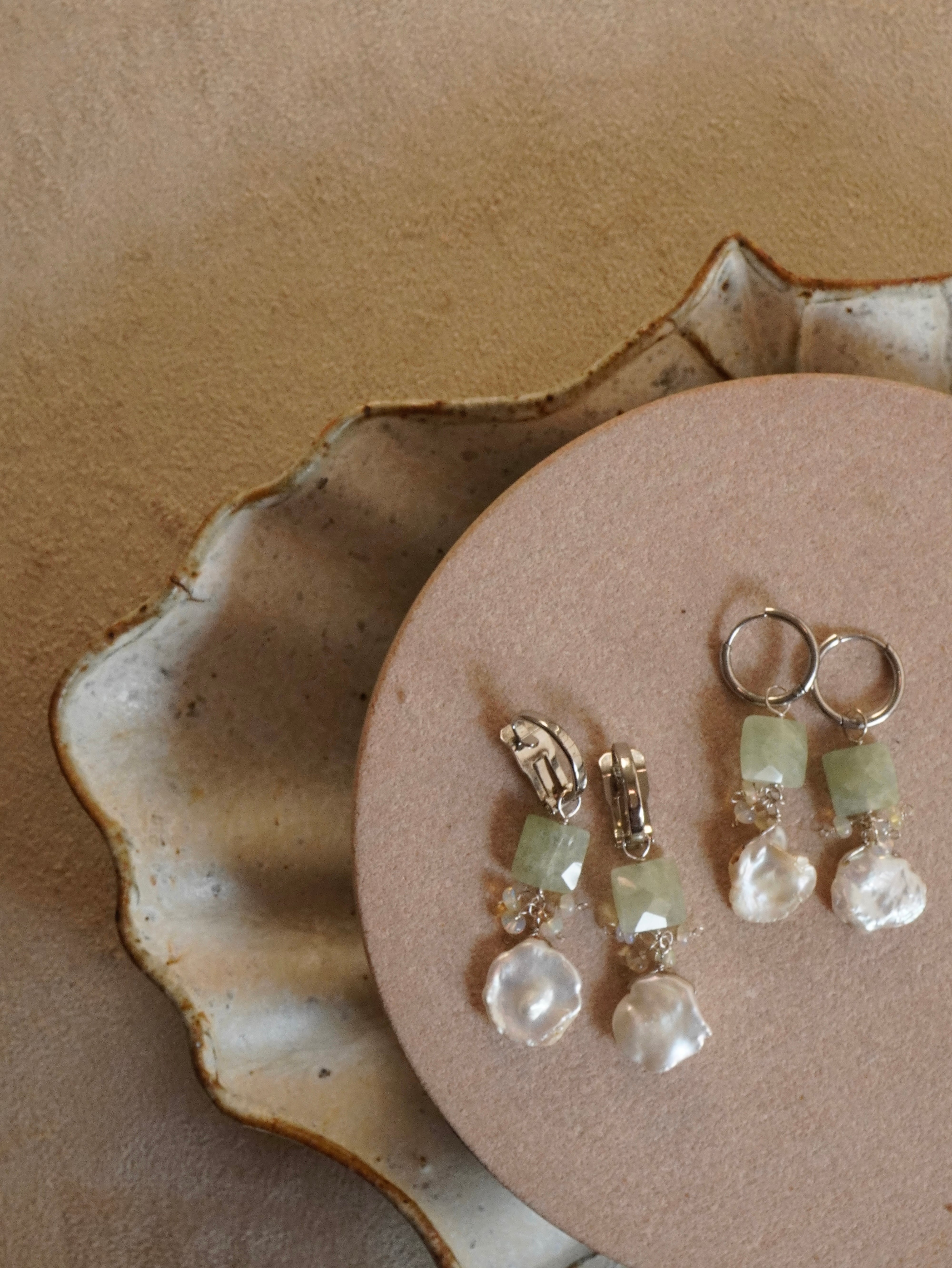▪︎花びらパールとうる艶オパールが揺れてお顔周りがパッと明るくなります